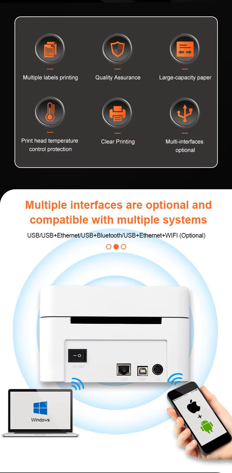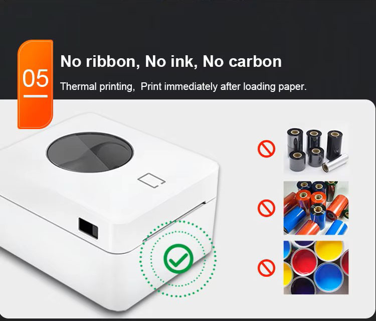 Thermal printer, no need for carbon transfer ribbon, cost-saving and portable.